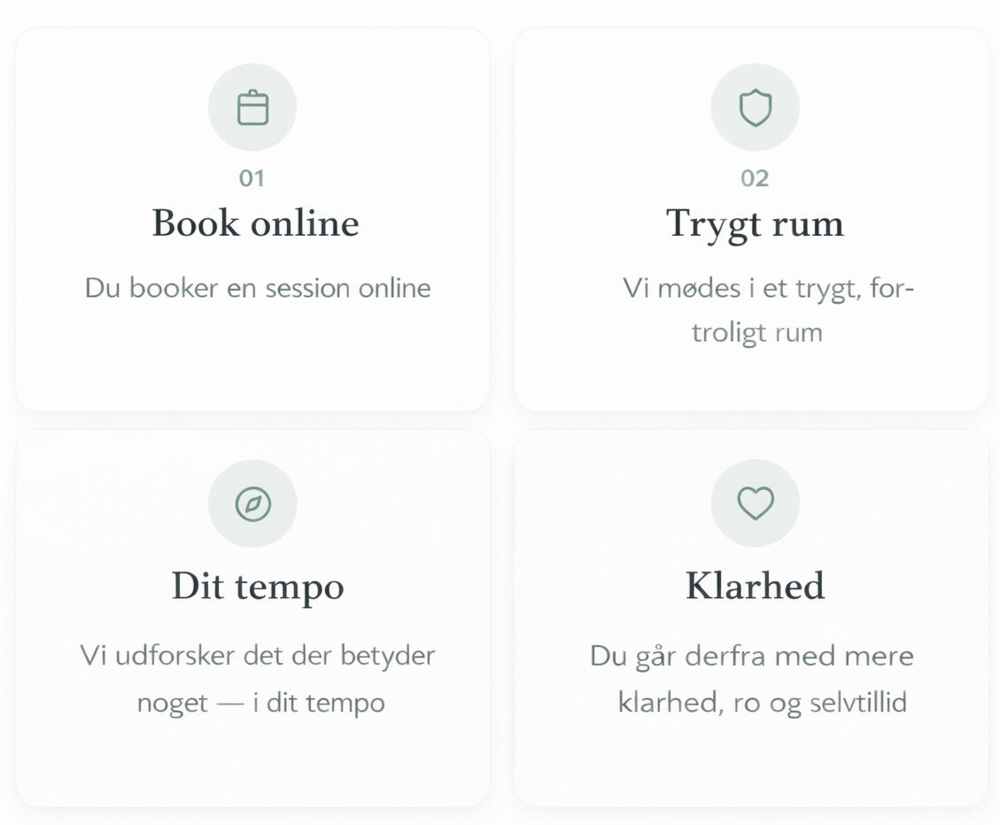 I work with people who feel stuck, uncertain or disconnected from themselves.Through calm, reflective conversations grounded in therapy and NLP, I help you reconnect with your strengths and regain trust in yourself.I offer conversations in English, Danish and Norwegian.